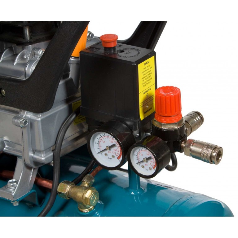 - · В ресивері встановлений запобіжний клапан високого тиску та дренажний клапан зливу конденсату